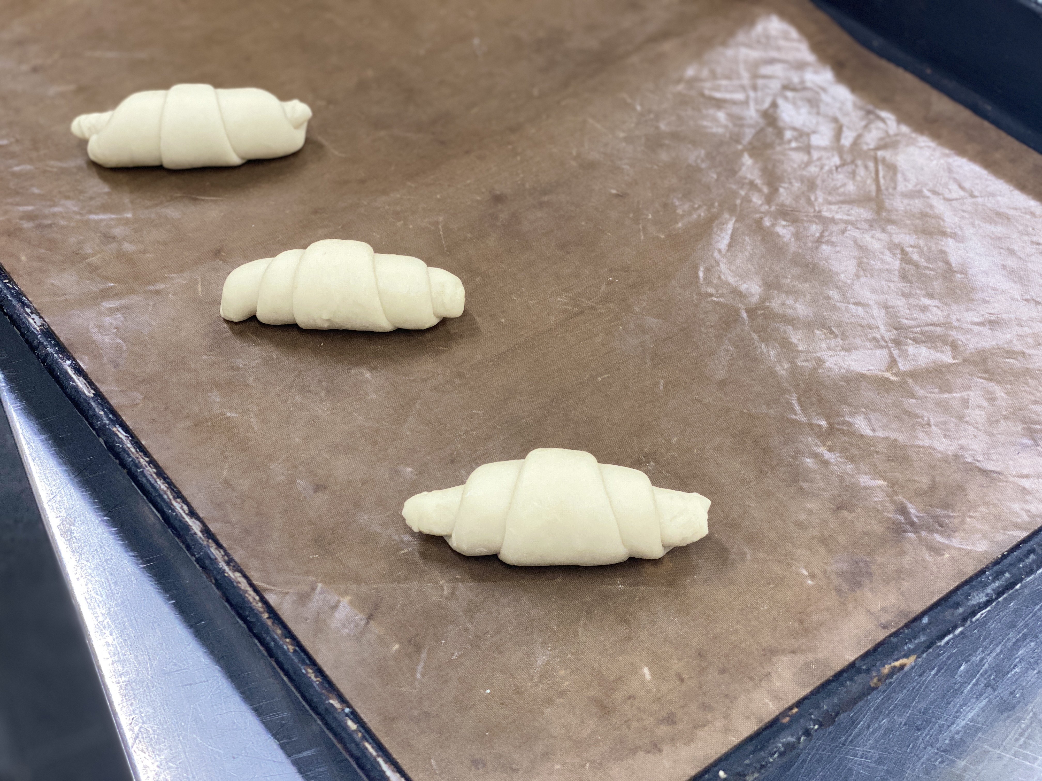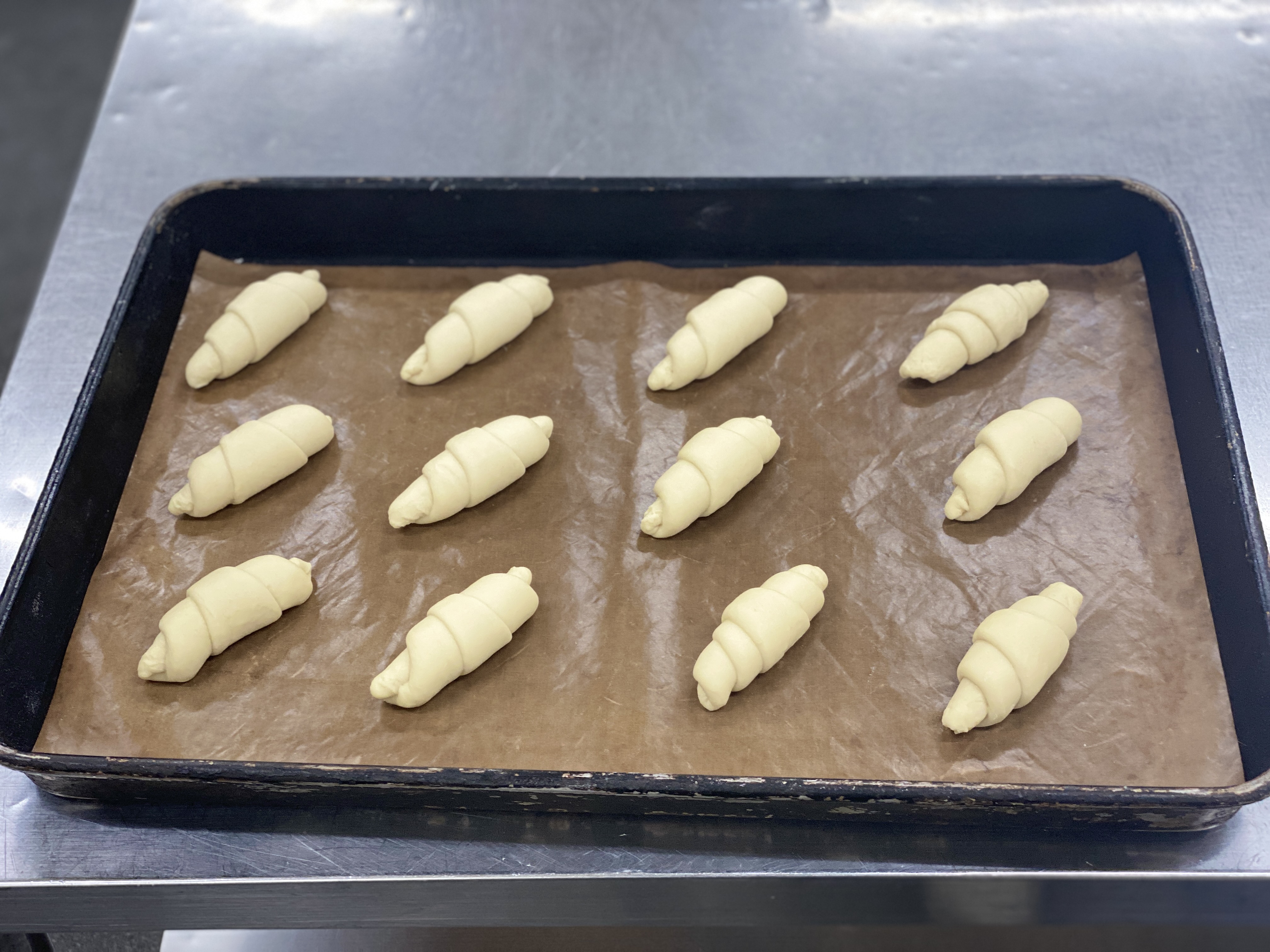 평철판 하나에 12개씩 팬닝하여 발효를 해줍니다.