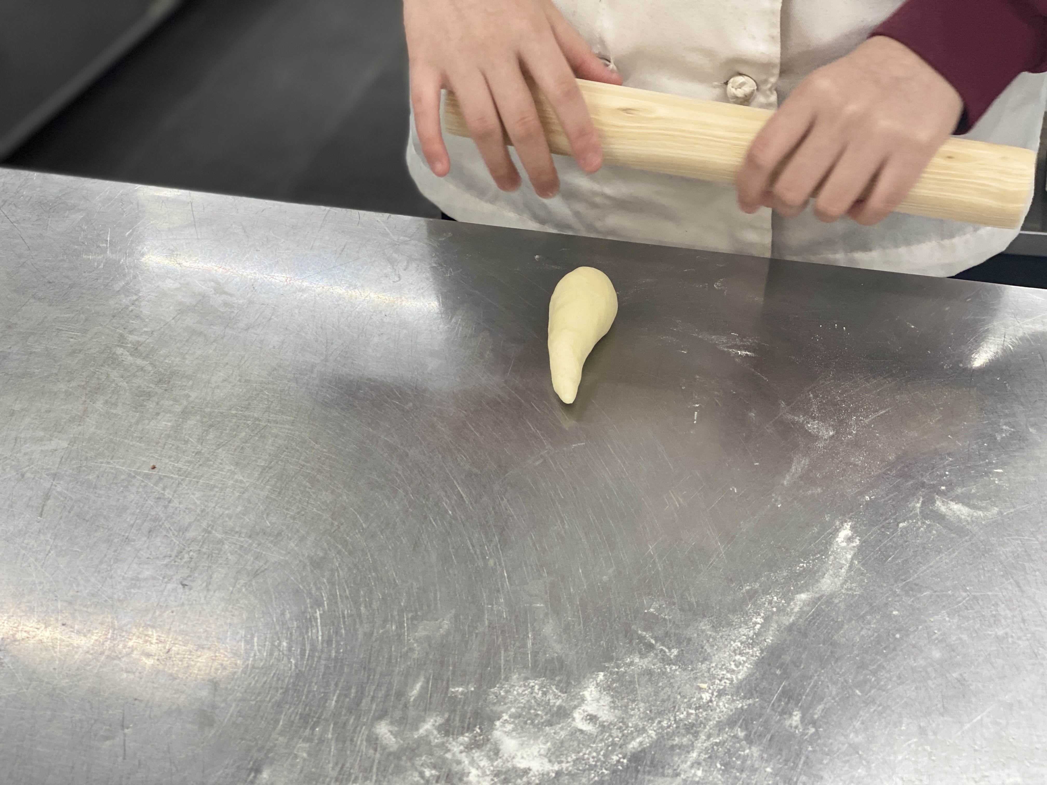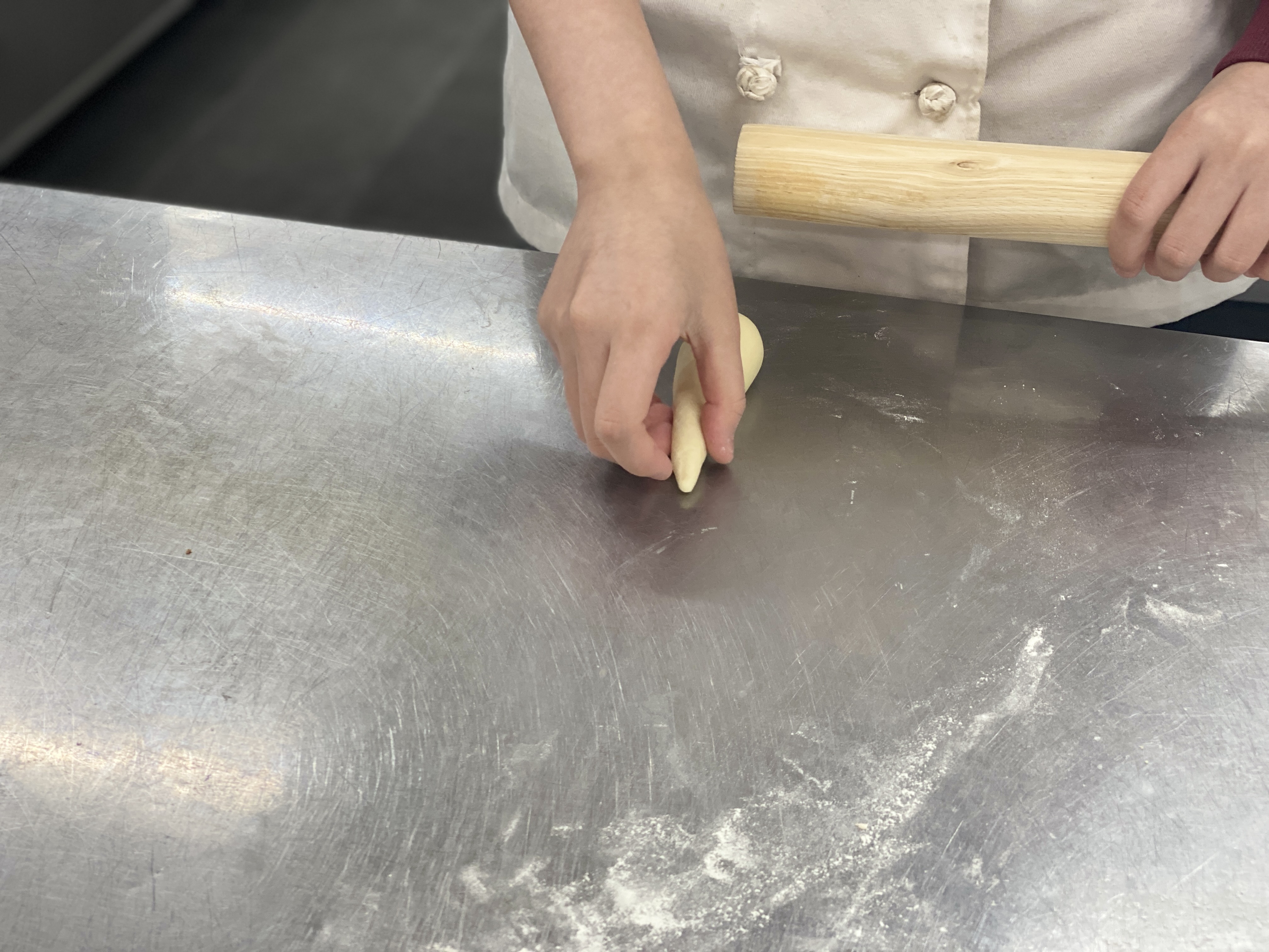 둥글리기 후 중간발효를 거쳐 정형작업을 시작합니다.